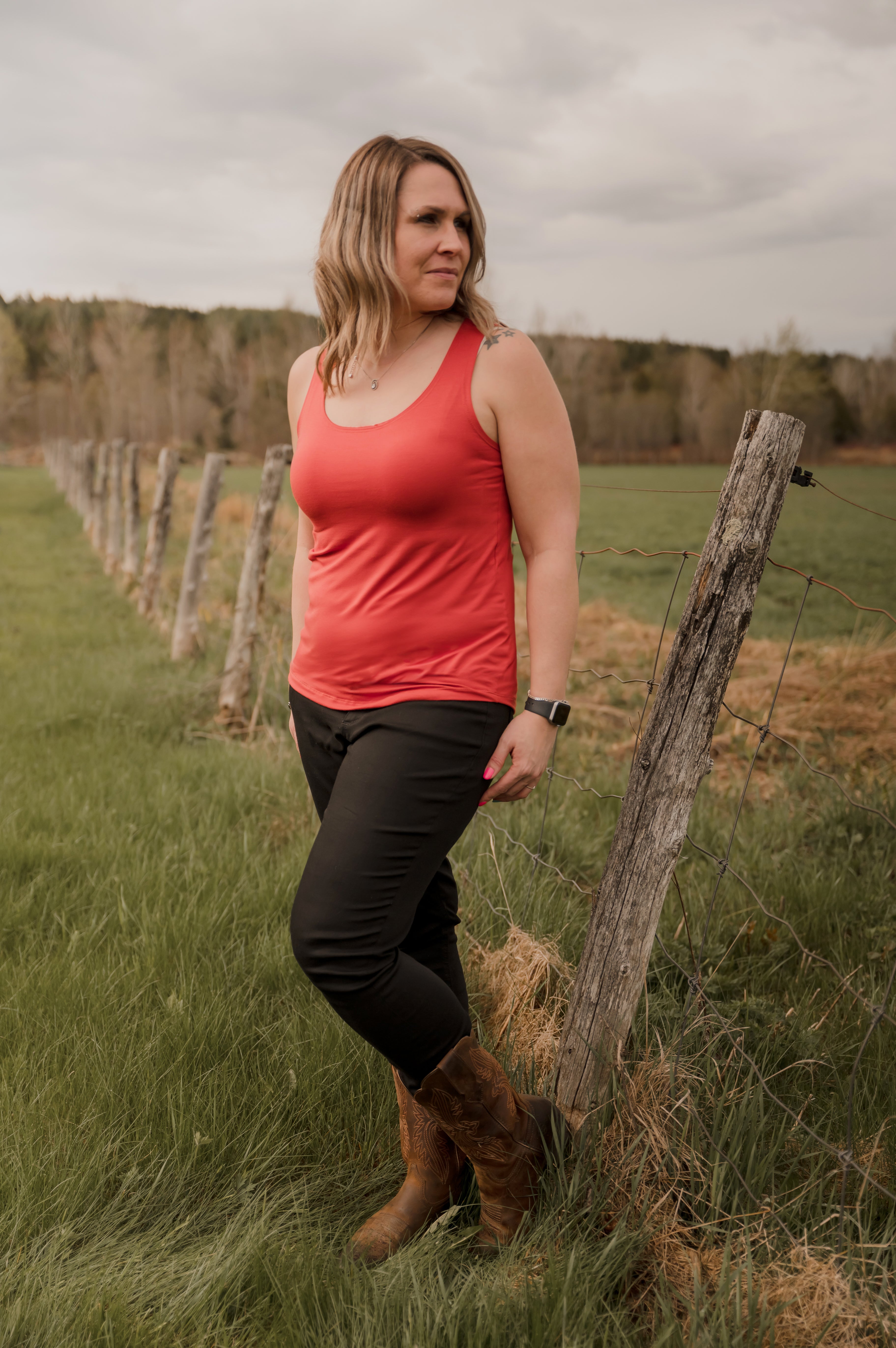 Camisole Winslow pour femme 2.0 orangé avec le bas arrondi et les bretelles larges