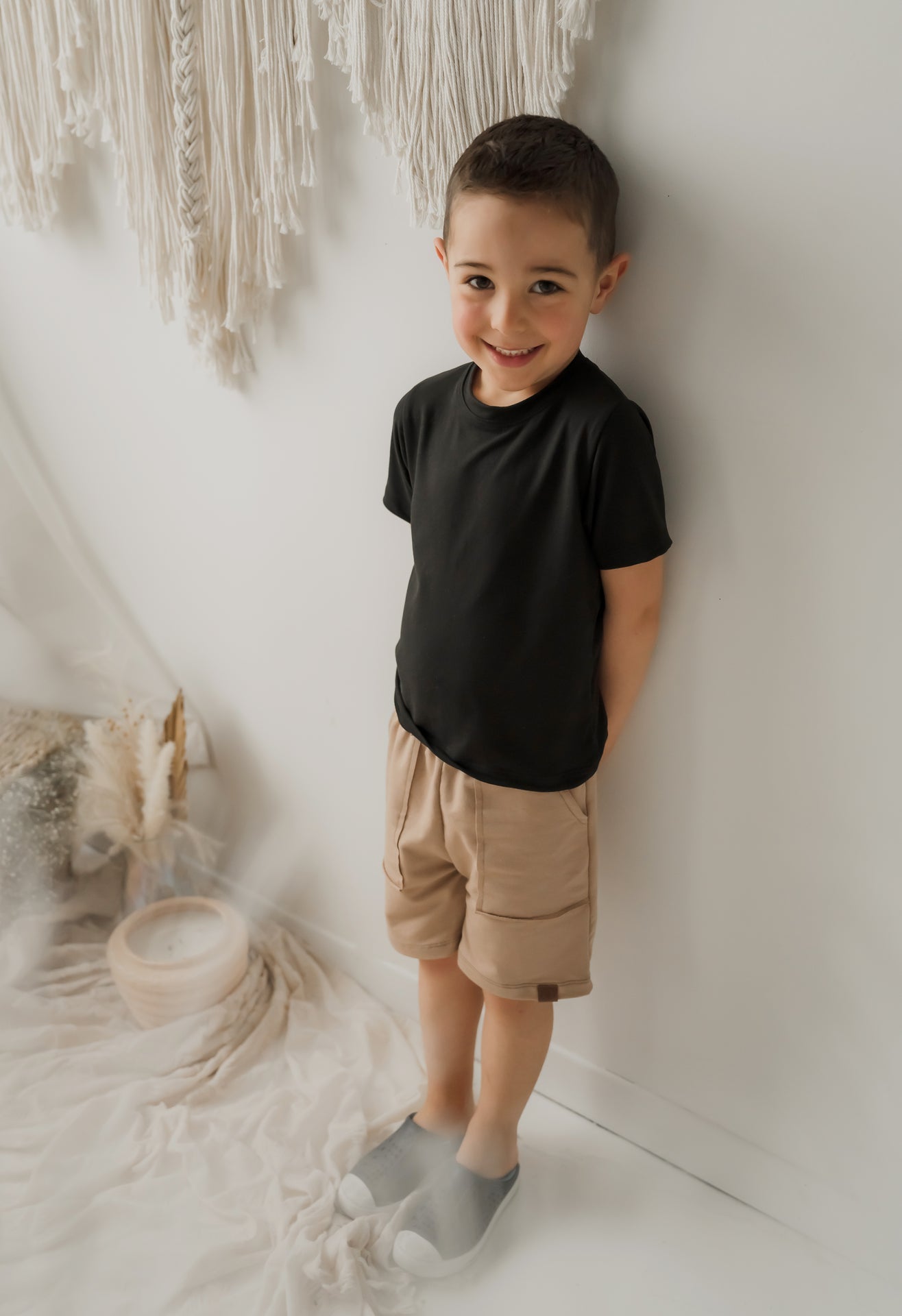 Offrez à vos enfants un confort inégalé avec notre chandail à manches courtes en bambou noir. Idéal pour toutes les occasions, ce chandail combine douceur, durabilité et style pour les accompagner dans toutes leurs aventures.