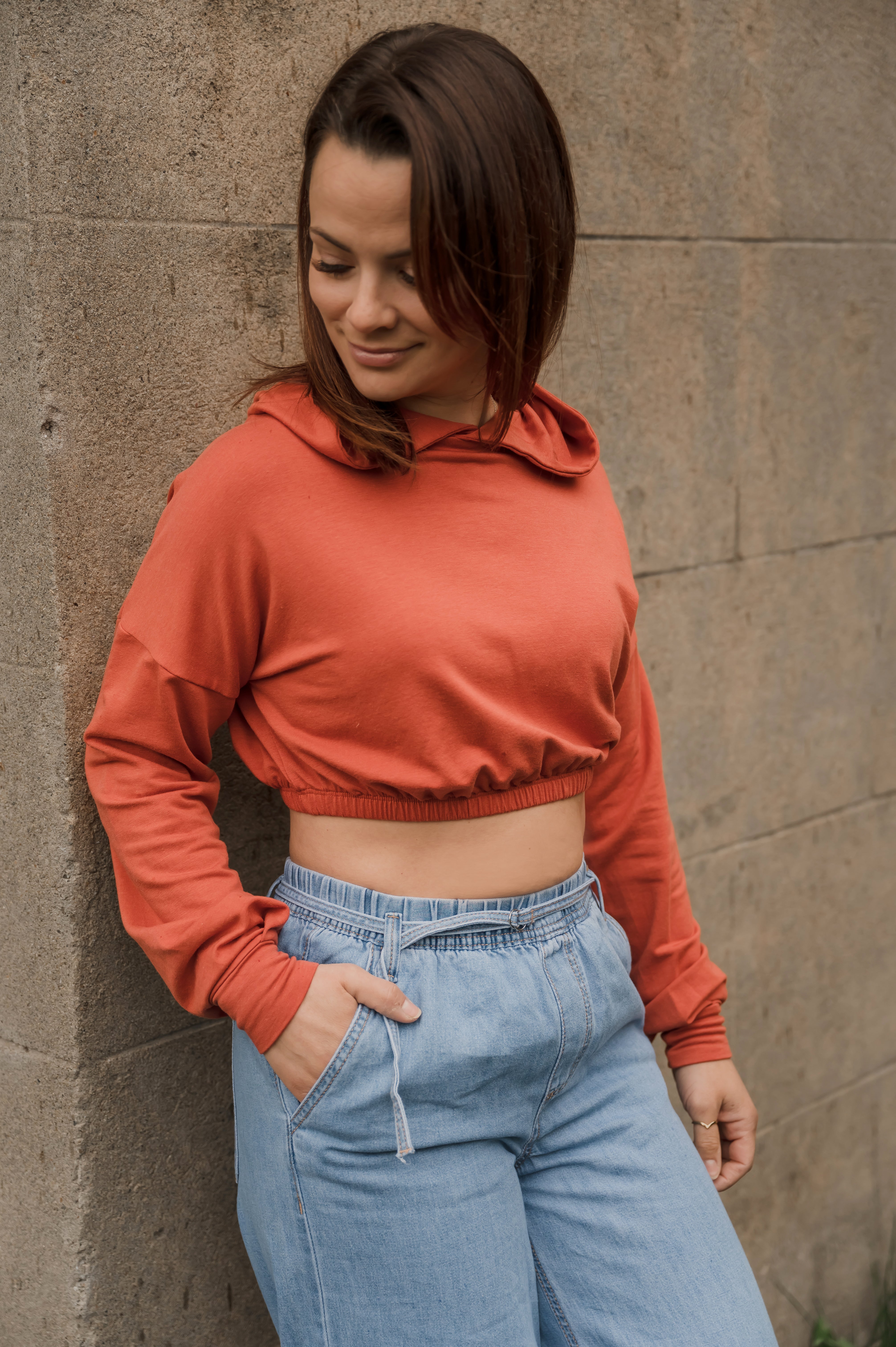 Hoodie crop manche longue Winslow en bambou orangé avec élastique à la taille pour femme