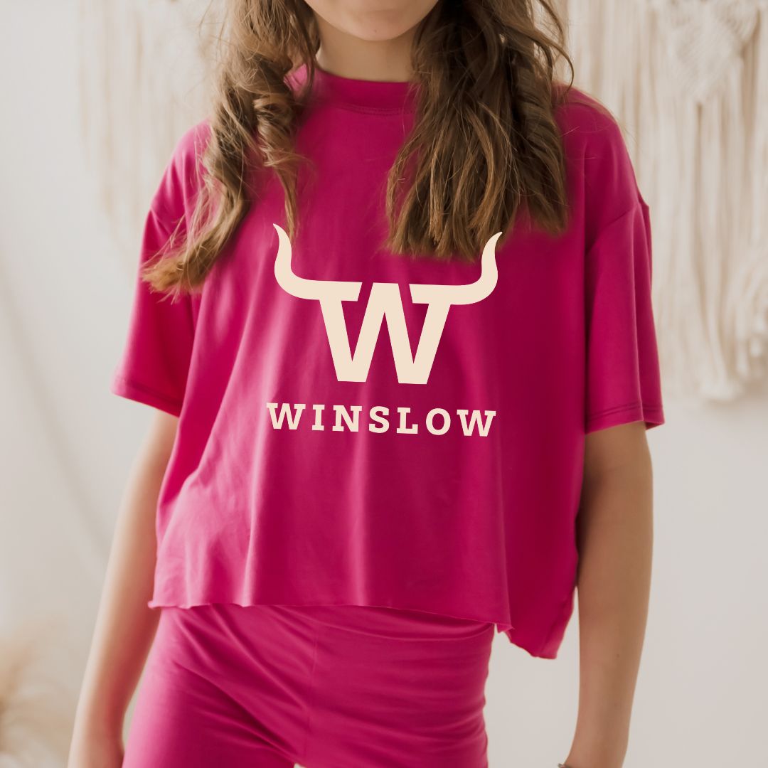 T-shirt crop Winslow magenta en bambou pour enfant, grandeurs 2 à 14 ans