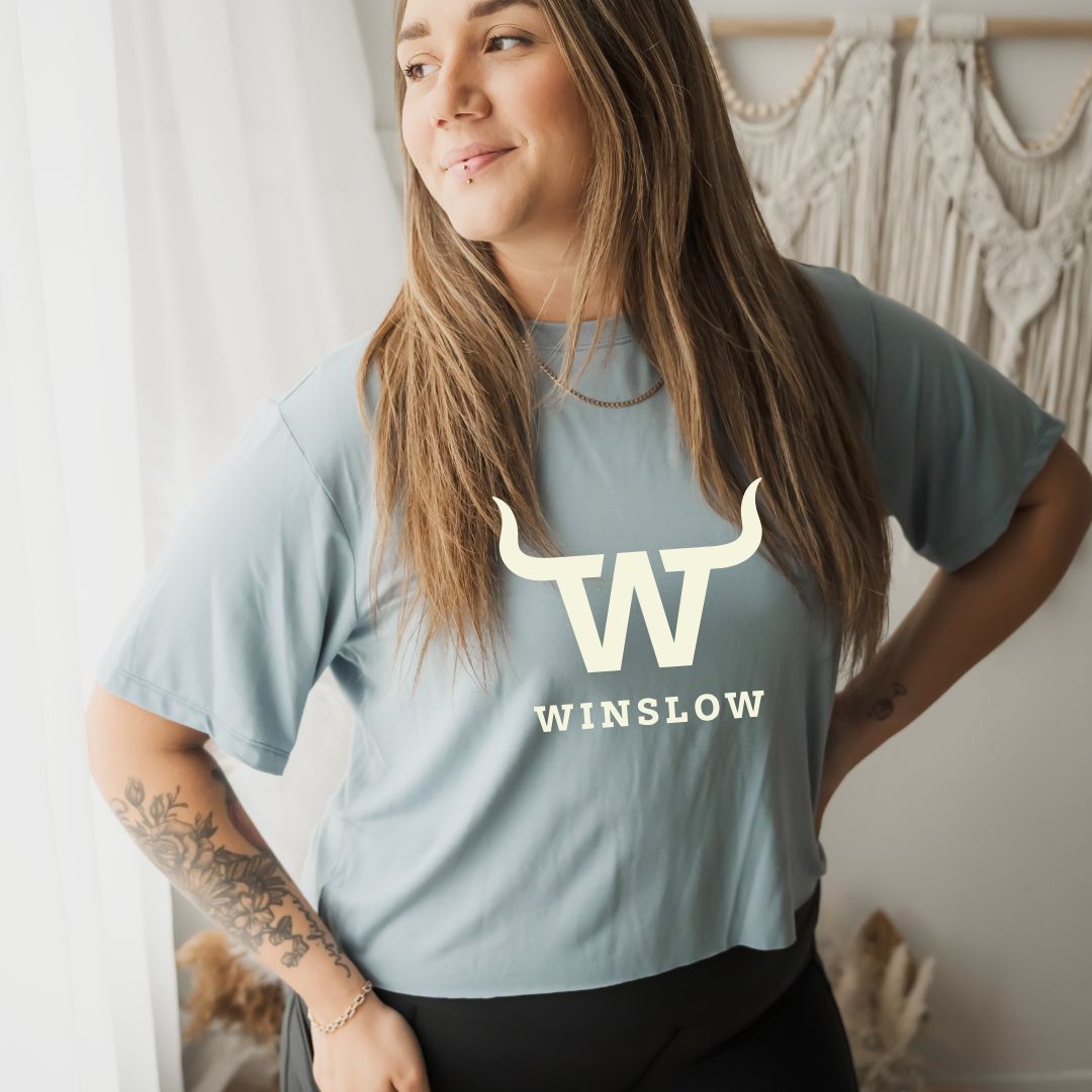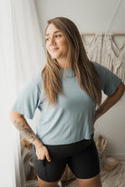 T-shirt Marie crop Winslow en bambou bleu ciel pour femme.