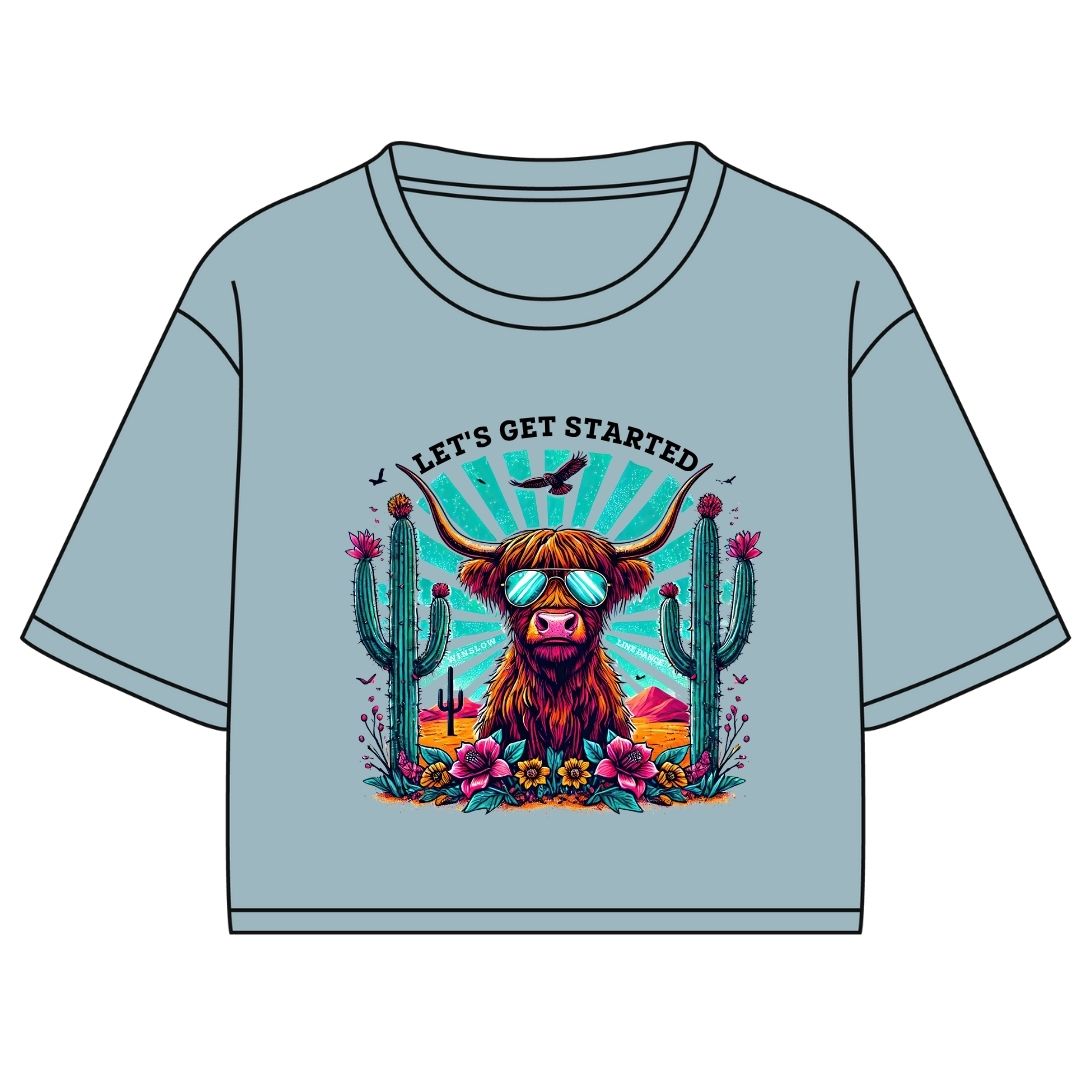 T-shirt Marie crop Winslow en bambou bleu ciel pour femme - Imprimé Let's get started